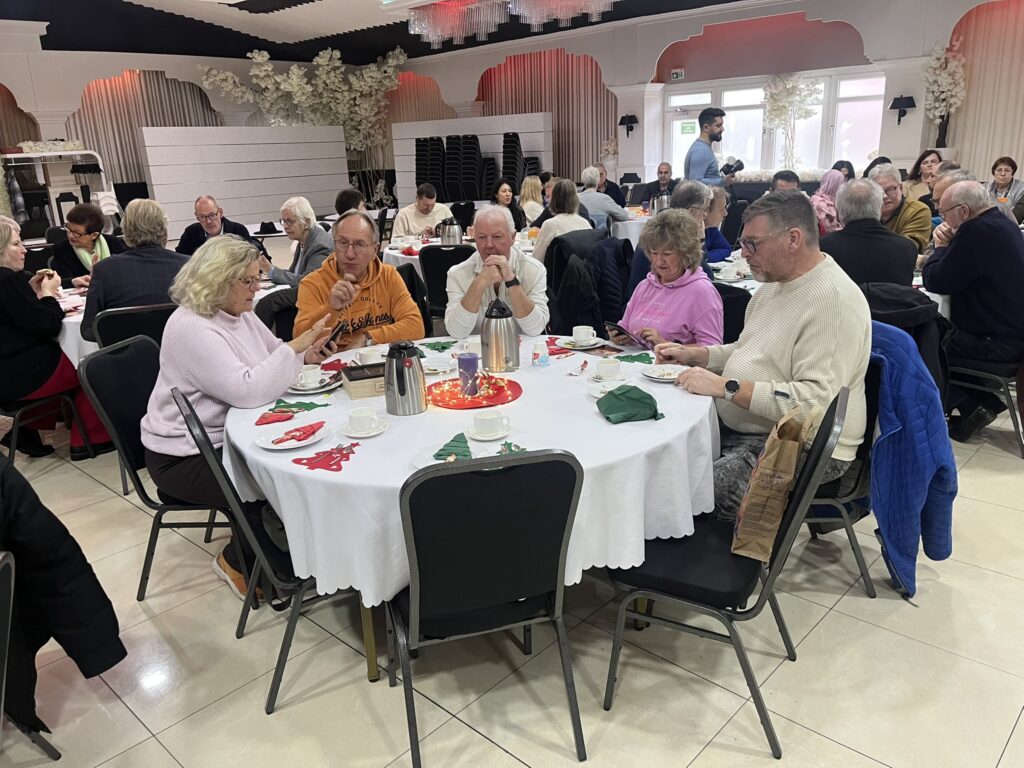 Am 10.12.2025 fand das weihnachtliche Frühstück mit unserer Schirmherrin Frau Stenau im Saal der Syrisch Orthodoxen Kirche in Gronau statt. Mehr als 60 Personen und Gäste konnten sich an einem vielseitigen Frühstücks-Buffet bedienen. Auch selbstgebackene Torten, die Frau Stenau zum Nachtisch beitrug, fanden großen Anklang. Höhepunkt der Veranstaltung war der Besuch des Nikolaus mit Knecht Ruprecht.