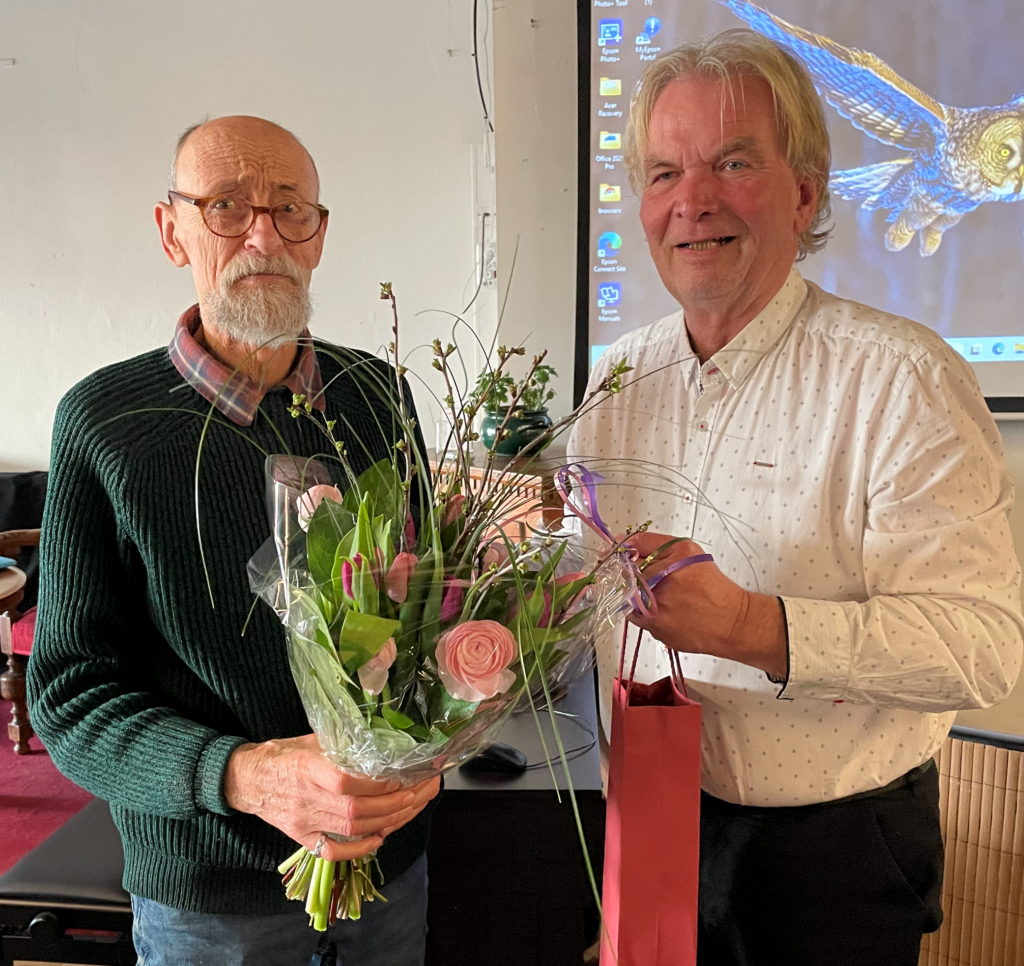 Für sein mehr als 20-jähriges Engagement — sowohl in der Alltagsarbeit als auch im Vorstand der Tafel — wurde im Rahmen der Versammlung Karl-Heinz Hoffmann-Hansen gedankt. Er trat nicht erneut zur Vorstandswahl an und wurde vom Vorsitzenden mit einem Geschenk bedacht. Lenz: „Du hast Dich bis zuletzt für die Tafel engagiert, hast trotz Deines Alters noch regelmäßig Lebensmittelkisten zu Bedürftigen gebracht — dafür danken sie und wir Dir herzlich.“